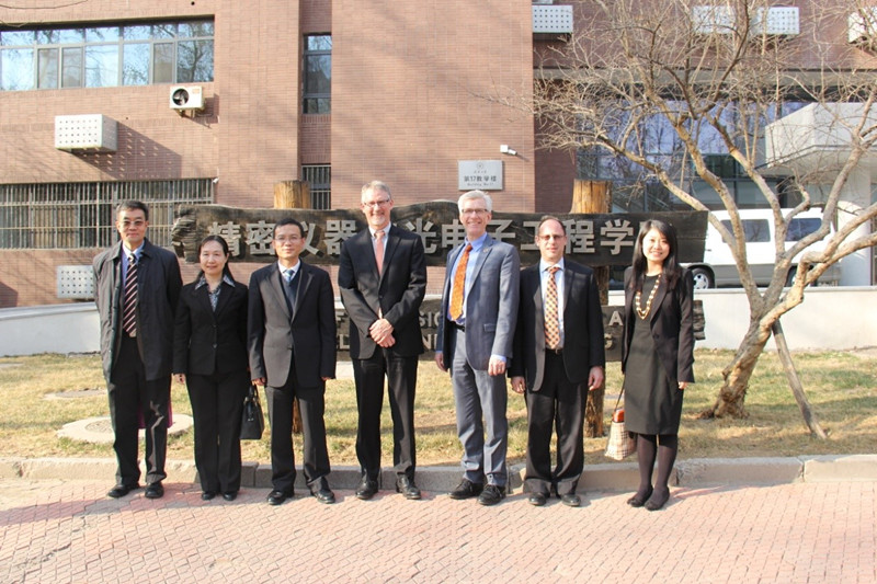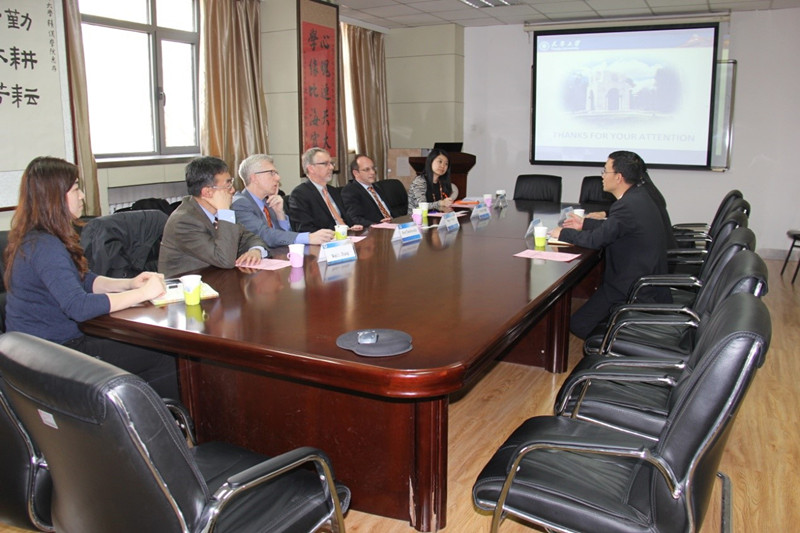 To further promote the internationalization quality improvement plan and strengthen college internationalization, the School of Precision Instrument and Opto-electronic Engineering, Tianjin University, invited a delegation from Oklahoma State University. Prof. Randy Kluver, Dean of the Institute of Global Research and Partnerships, Prof. Bret Danilowicz, Dean of the Faculty of Arts and Sciences, Prof. Norb Delatte, Dean of the Department of Building and Environmental Engineering, and Ms. Vivian Wang, Head of China Cooperation Program visited TJU and attended a forum. School leaders also participated in the forum including Wang Hailong, Party Committee Secretary, Cai Huaiyu, Associate Deans and Prof. Zhang Weili.