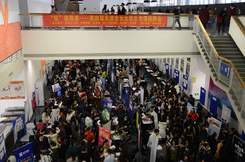 Like Rao and her friends, up to 6,000 College girls have benefited from this special March 7th event. Jointly sponsored by Tianjin University, the Tianjin Municipal Working Committee on Children and Women, and the State-owned Assets Supervision and Administration Commission of Tianjin Municiple People’s Government, the event took place at Tianjin University Peiyang Park Campus where 201 recruiting companies were invited, including large state-run companies and foreign-funded enterprises, which provided graduates with multiple choices.