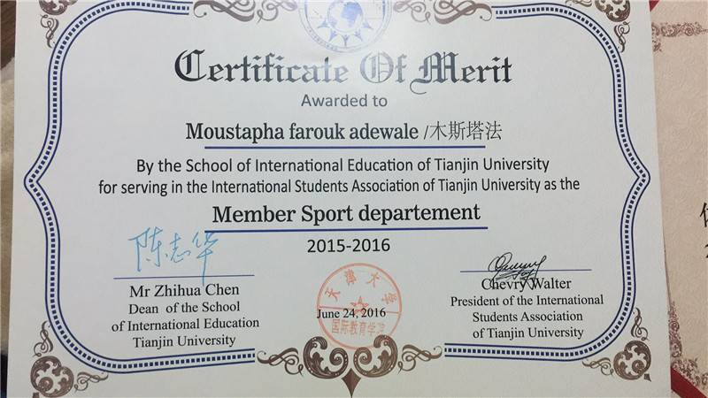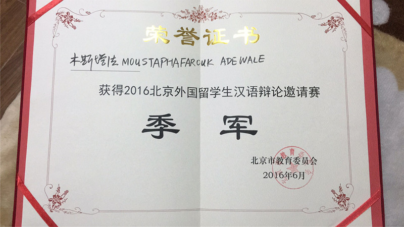 When Moustapha first came to China in 2009, he took the preparatory course program in China to learn Chinese for one year at his own expense. Now he is not only able to communicate fluently in Chinese, but has also mastered writing which is a skill deemed extremely difficult by foreigners. As a representative of TJU, he participated in the 2016 Beijing International Students Debate Competition in Chinese and his team won third place. In addition to his own native language Yoruba, he can speak Chinese, English and French. “If you decide to come, you have to study hard. Don’t waste your time here,” was Moustapha’s learning creed. This personal motto helped him to pass most of his undergraduate and graduate courses with excellence.