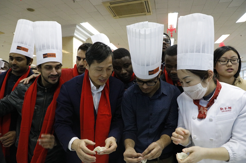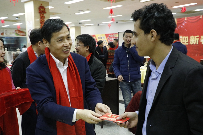 On February 15, 2018, Zhong Denghua, the President of Tianjin University celebrated the Chinese New Year’s Eve with more than 200 students and teachers who had remained on the campus from home and abroad, bringing them home-like warmth.