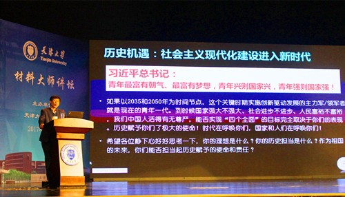 Recently, a forum for material masters organized by the School of Materials Science and Engineering, Tianjin University was held in Qiushi Hall, Peiyang Park Campus. Xue Qikun, an academician of the Chinese Academy of Sciences and vice president of Tsinghua University, explained the discovery of the materials from Quantum Materials to Quantum Anomalous Hall Effect for more than 1,000 teachers and students of the college.