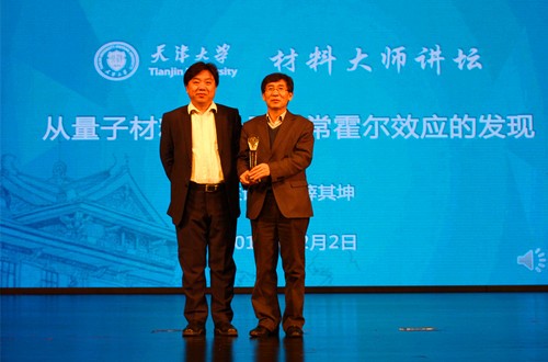 Hu Wenbin, dean of the School of Materials, presented the Memorial Trophy for the Master of Materials of Tianjin University to Xue Qikun. The second Material Master Forum of Tianjin University successfully concluded.