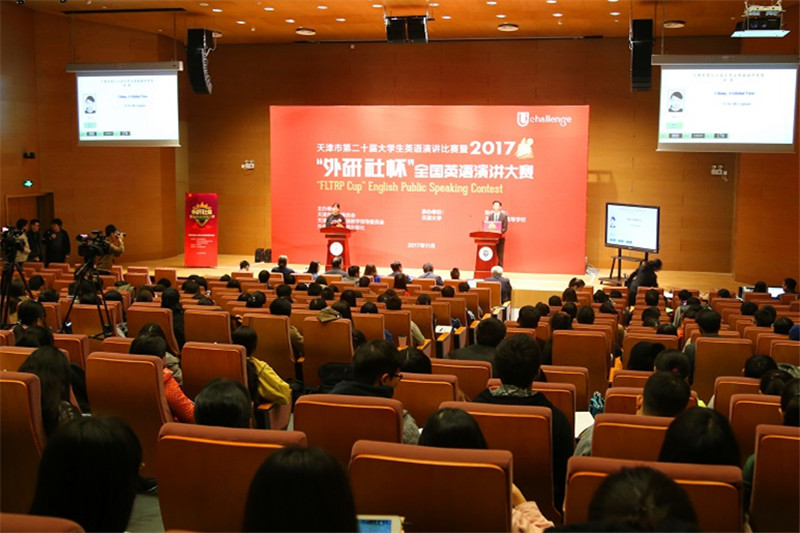 Recently, the 20th English Public Speaking Contest for college students of Tianjin municipality and 2017 “FLTRP Cup” English Public Speaking Contest (Tianjin Division) was held in the lecture hall of Tianjin University Library on the Peiyang Park campus. This contest was co-held by Tianjin Municipal Commission of Education, the Adversary Committee of College Foreign Language Teaching of Tianjin and Foreign Language Teaching and Research Press, hosted by Tianjin University and supported by other universities and colleges in Tianjin. The guests present were: Bai Haili, Deputy Director of Tianjin Municipal Education Committee; Lian Zhongfeng, Director of the Higher Education Department of Tianjin Municipal Education Committee; Liu Bing, Deputy Director of the Higher Education Department of Tianjin Municipal Education Committee; and Sun Fenglan, the Vice Editor from Foreign Language Teaching and Research Press.