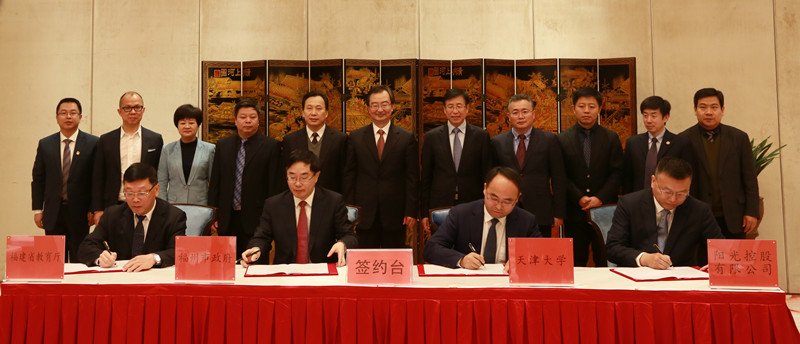 Party Secretary Li Jiajun hoped that an International Educational Institution to be established would be a base, not only for training first-rate talent, but also for technology innovation and the transformation of scientific research into technological production. He emphasized that both sides would cooperate to establish a platform of cooperation and exchange between home and abroad with a completely new mechanism. He said, Tianjin University will spare no pains to achieve it. Vice President Hu Wenping, on behalf of Tianjin University, signed a Strategic Letter of Intent for Cooperative Education with the Department of Education of Fujian Province, the Fuzhou Municipal People’s government, and Sunshine Holdings Limited.