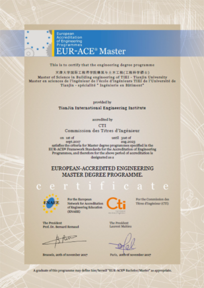 Recently, Tianjin International Engineering Institute gained EUR-ACE accreditation.