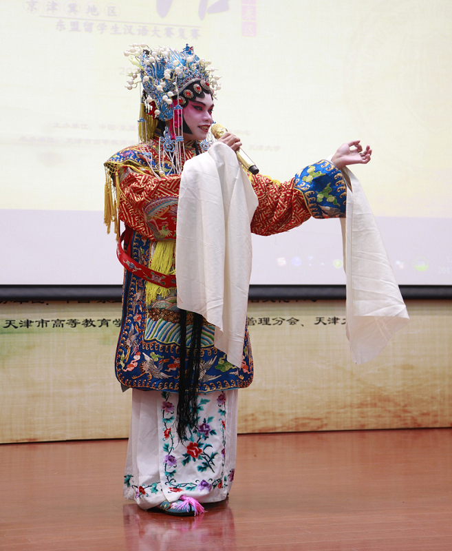 Forty outstanding ASEAN student representatives from 13 Tianjin universities competed on the same stage, and put on a wonderful talent show of Chinese traditional culture, including Chinese comic dialogue, classical dances, martial arts, Chinese painting and paper cut, and poet chanting.