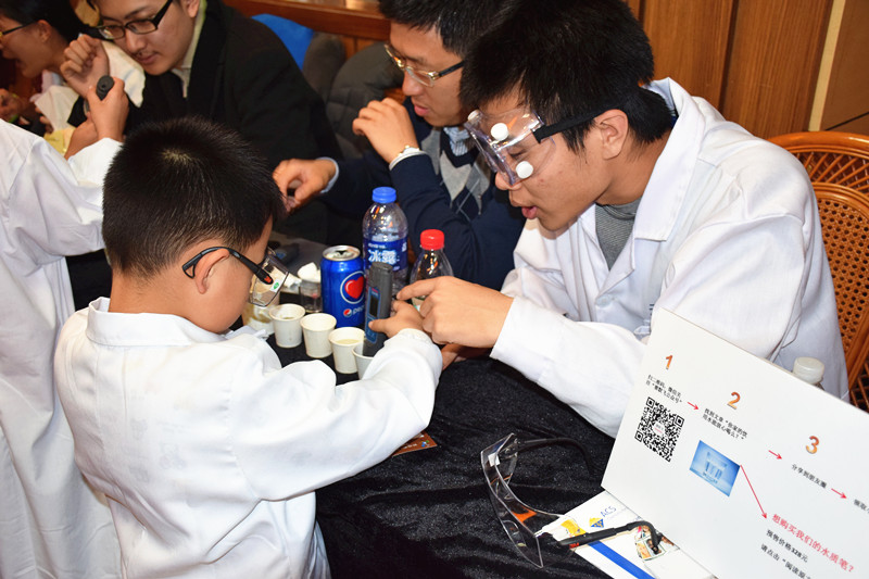 The words “enjoy” and “chemistry” often aren’t used together by parents: In many homes, the subject instead is associated with anxiety, stress and trepidation. However, recently an activity named TJU Chemistry Festival held in the Labor Union Building of Tianjin University has subverted our traditional impressions of chemistry. This crowd-pleasing event is jointly organized by the American Chemical Society (ACS) JingJinJi Chapter and the Tianjin University Student Chapter.