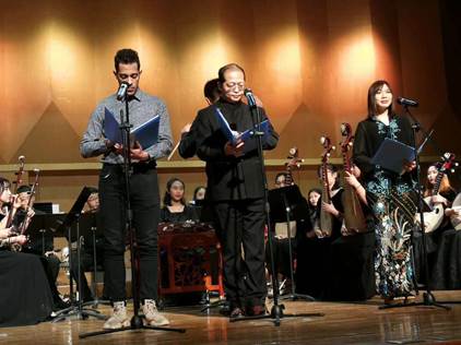 Prof. Ma(in the middle) leads Ray and another international student to participate in a poety reading competition.