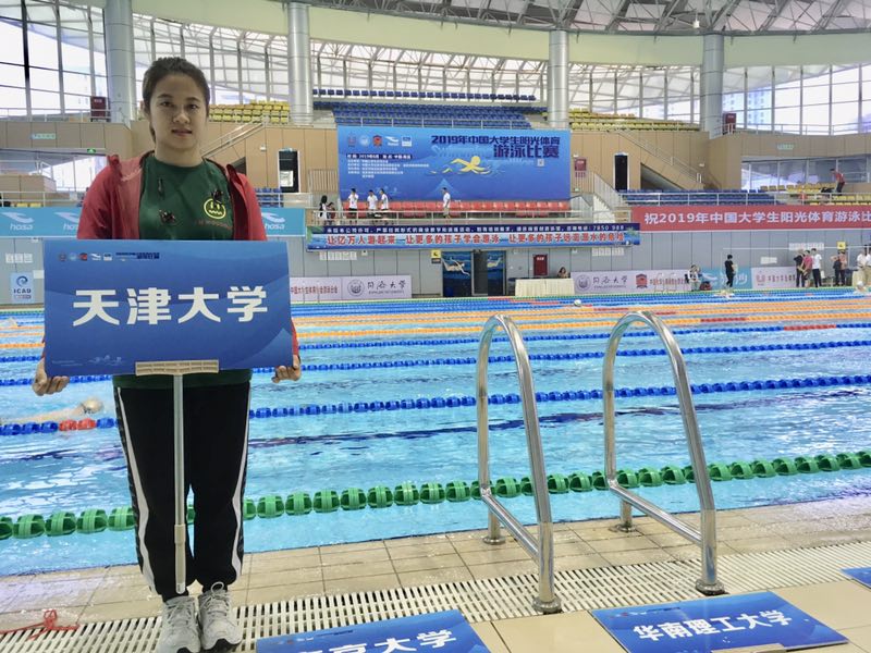 On June 11, after two days of heated competition, the 2019 Sunshine Sports Swimming Competition of Chinese Students came to an end in Yibin City, Sichuan Province. Jin Mengyang, a junior from the College of Management and Economics of TJU, won a gold medal in the Women’s 400m Freestyle and a silver medal in the Women’s 200m Freestyle.