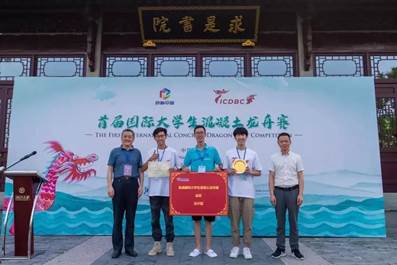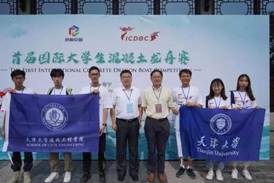 Tianjin University team led by Prof. JIANG Mingjing and Prof. ZHU Haitao won the Gold Medal in the First International Concrete Dragon Boat Competition (ICDBC 2019) held from June 6th to 7th. The team members are undergraduate students from the School of Civil Engineering of Tianjin University, including CHEN Haoyu, SU Zhiwei and ZOU Yi.