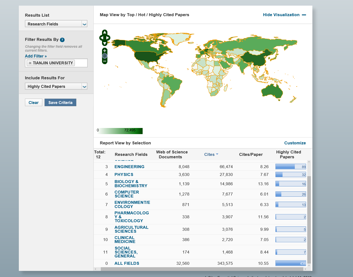 The ESI statistics over the past ten years ranked Tianjin University’s Social Sciences General 1305th with 174 papers and 1468 citations (including 7 Highly Cited Papers with 312 citations) among 1483 institutions which entered the ESI Social Sciences rankings.