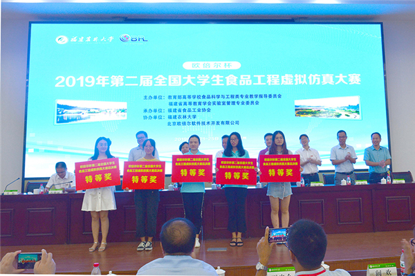 From August 22 to 25, the 2019 2nd National College Student Food Engineering Virtual Simulation Contest was held at the Fujian Agriculture and Forestry University. Under the guidance of Xiao Xiaoming and Li Guobing, teachers from the School of Chemical Engineering and Technology, the Tianjin University team comprised of three 2016 undergraduates majoring in food science and engineering, Hu Jiaqiang, Yu Yue and Zhang Zhen, won a grand prize in the final round through the competitions of Food Engineering Theories, Virtual Simulation and Food Engineering Experiments.