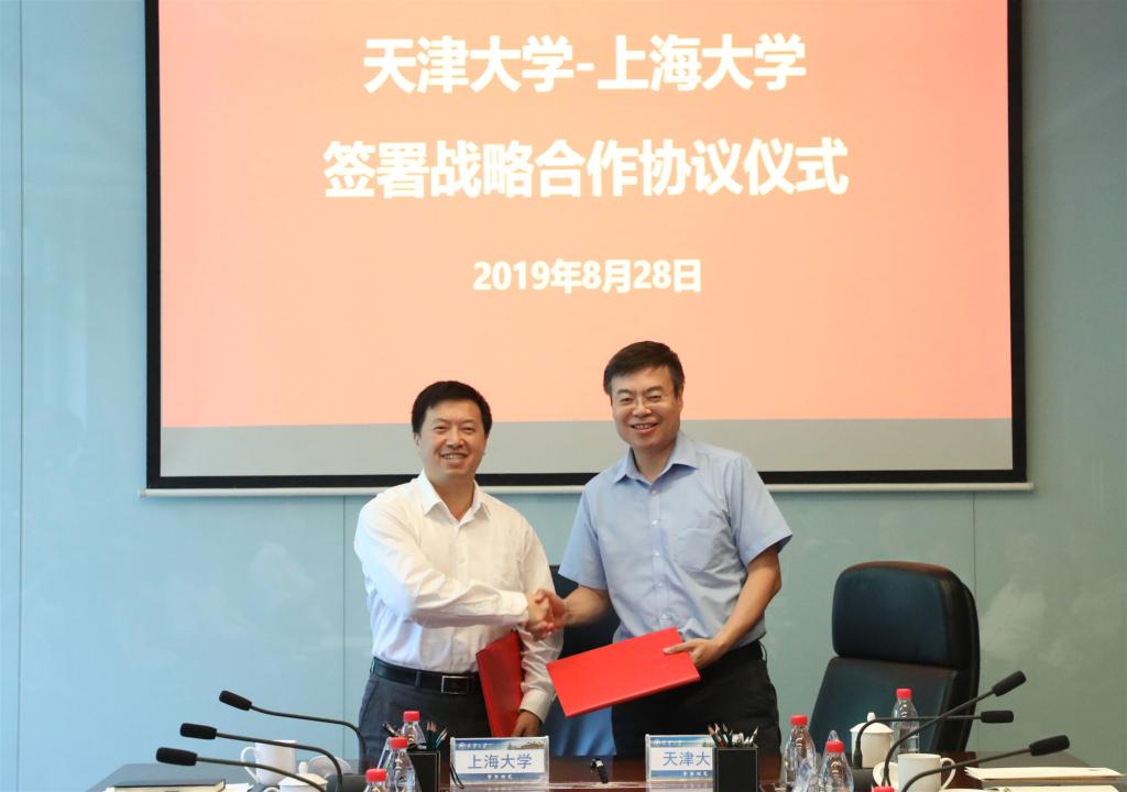 On August 28, Tianjin University and Shanghai University signed a comprehensive strategic cooperation agreement at the Weijin Road Campus. Tianjin University Party Secretary Li Jiajun and President Jin Donghan and Shanghai University President Liu Changsheng attended the event.