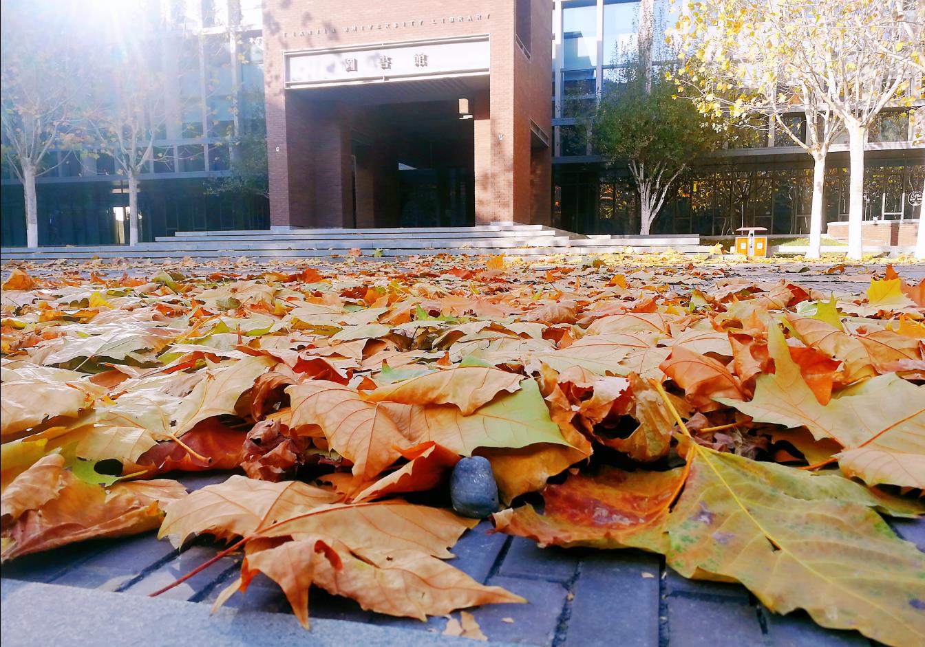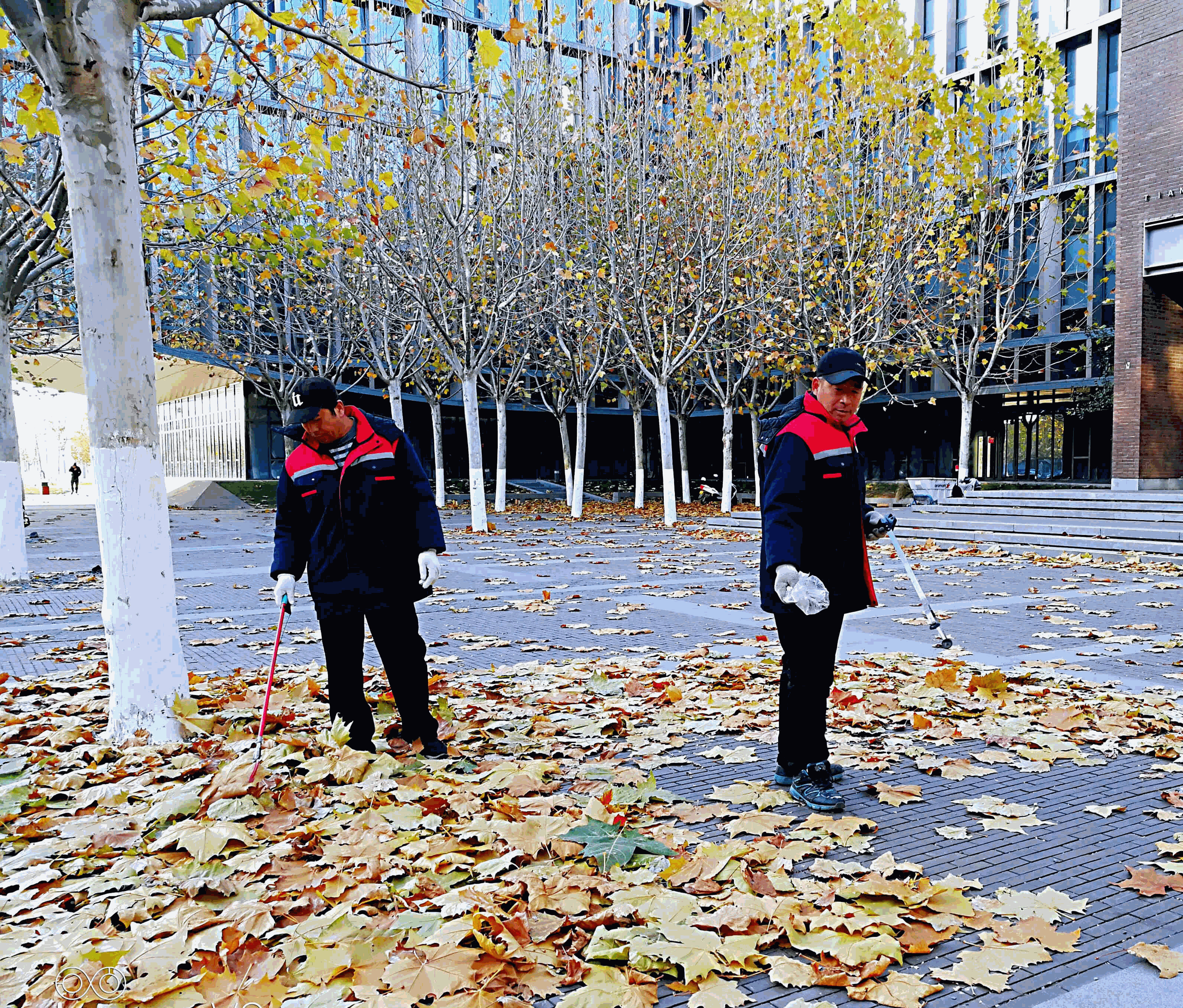 From the middle of November, trees such as sycamore and ash are in the period of centralized defoliation. So, the property management staff fastidiously observed the weather and changes of the cold air. On November 20, they launched the "defoliation without sweeping" plan. They selected the pedestrian roads on the south side of Building No.55, the library atrium, and the south side of Qiyuan dormitory as a "defoliation landscape area" pilot, which is suitable for teachers and students to walk around in a poetic atmosphere. Here, the leaves spread like a golden carpet, which is one of the most beautiful scenes of autumn.