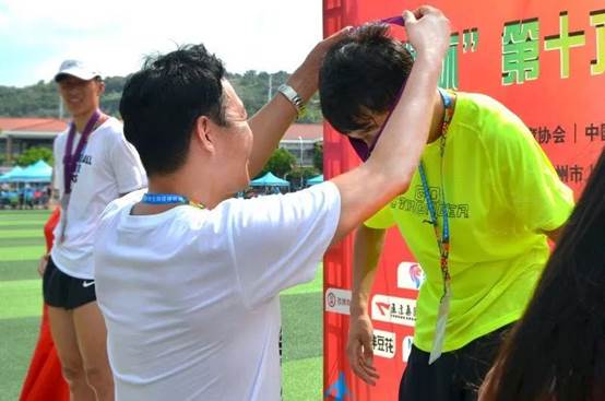 He looks tan. Wearing a simple black T-shirt and a pair of black running shoes, the only color on his whole body is an emerald bracelet. He is medium height and lean due to extensive exercise. It’s difficult for me to see him as a national champion because of his calm and restrained temperament until he slowly describes his pursuit of running.