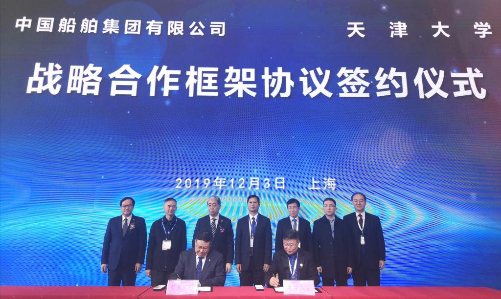 On December 3, a Strategic and Cooperative Framework Agreement was signed between Tianjin University and China State Shipbuilding Corporation Limited in Shanghai. In order to achieve common high-quality development and boost the building of a maritime power, both parties will pool their favorable resources together and make comprehensive cooperation in fundamental research, industrialization and cultivation of talents.