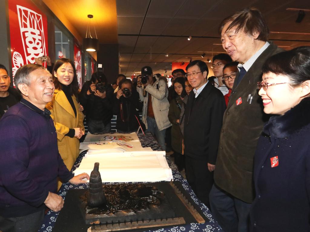 On the opening day, the successors of Tianjin Yangliuqing New Year Pictures including Huo Xiuying, Huo Qingshun, Huo Qingyou, and the heir to Tianjin Paper-cut Xu Zhiqi were invited to demonstrate their superb skills on the spot. Students came forward to communicate with them, and learned the New Year picture-painting and paper-cutting. Meanwhile, the members from XinZhu Painting and Calligraphy Society of Tianjin University wrote Spring couplets on site. Yuan Hongqi, the former director of the Department of Palace Life and Imperial Ritual of the Palace Museum, and Xiao Fang, a professor at Beijing Normal University, delivered two keynote speeches, themed "The New Year in the Palace" and "The Folk New Year", to present visitors the dinner of royal family at New Year Eve in Qing dynasty, as well as the customs of Chinese New Year.