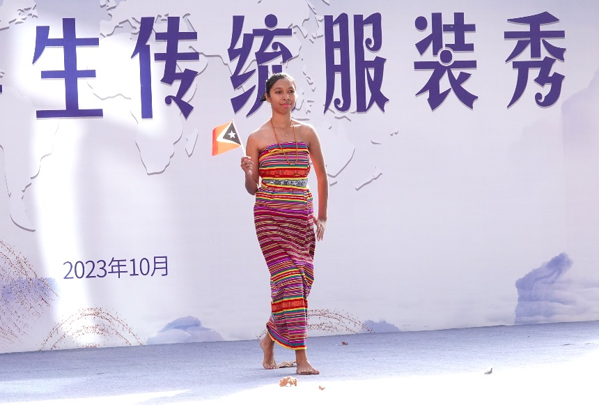 About 200 international students from 45 countries, including Honduras, Yemen, Papua New Guinea, Russia, Cambodia, and Mexico, showcased traditional costumes of their countries in the show. Many international students put on Chinese Hanfu clothing with their deep love for Chinese culture.