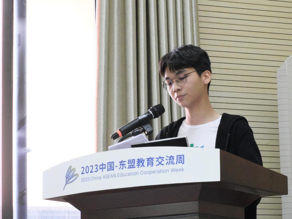Tan Jing Yong speaks during the 2023 China ASEAN Education Cooperation Week.