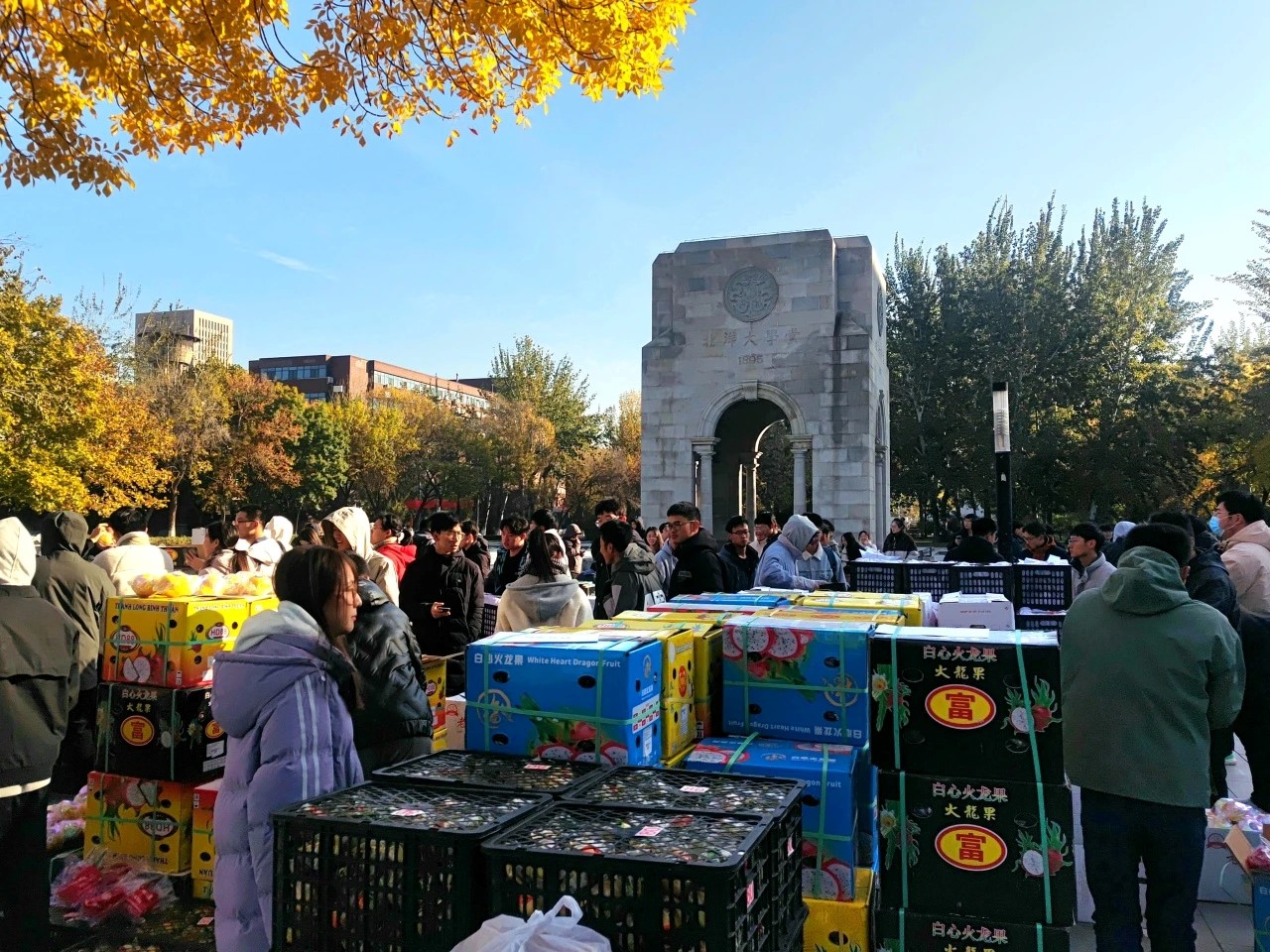Tianjin University Fruit Festival has arrived! A package of fruits for free, which includes orange, pitaya, grapefruit, and Huaniu apple was sent to students for free. Apart from the gift of fruits package, various themed activities were held, including fruits garden party, sports game, and fun quiz.