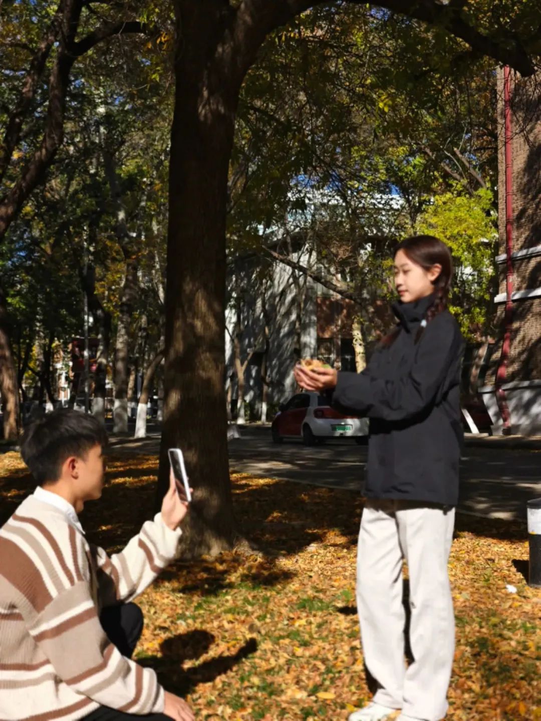 Beautiful fall foliage is in full swing at Tianjin University, as the mesmerizing Maillard style paints a stunning picture across the campus. Whether it's a leisurely stroll through the campus pathways or a cozy gathering with friends beneath the rustling leaves, the Maillard style and the season are truly a match made on campus. Let's savor this caramel season on Campus!