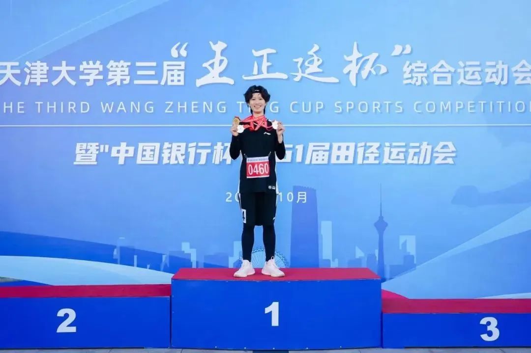 Wang Wenjie enjoys her athletic life at TJU. She is a 2022 undergraduate at the School of Life Sciences, triumphed in the women's 100m event at the 61st Tianjin University Athletics Championships in 2023. She became the first gold medalist of the event.