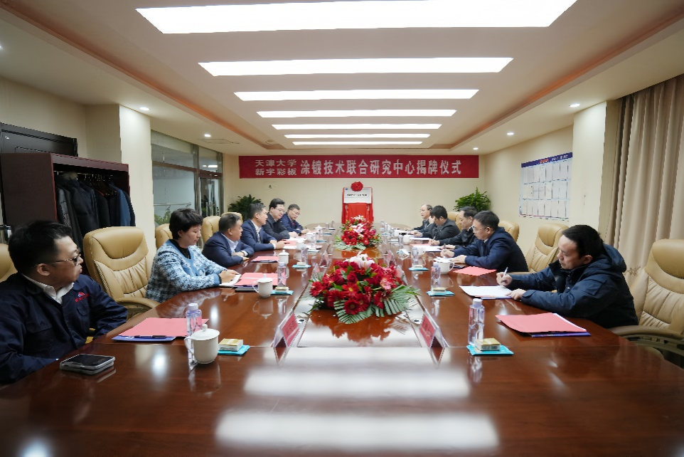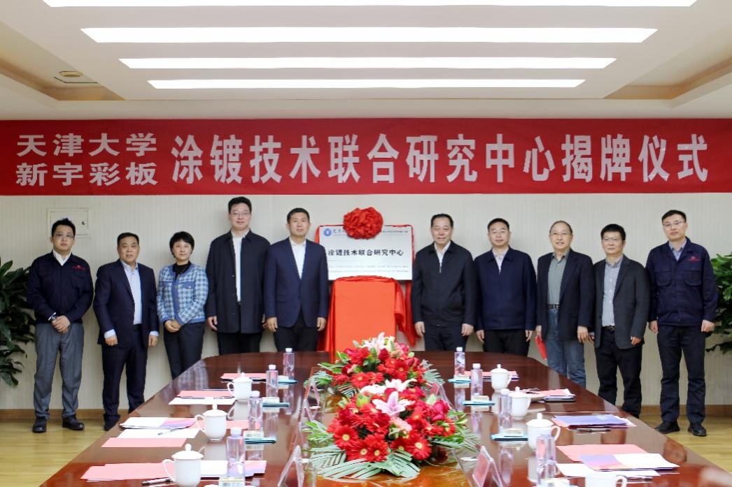 On January 27, 2024, Tianjin University - Xinyu Joint Research Center for Coatings Technology was unveiled. Yang Xianjin, Secretary of the Party Committee of Tianjin University, Qi Zhongbo, Deputy Secretary of the Xiqing District Committee of Tianjin Municipality, Wang Tianyou, Vice President of Tianjin University, and Du Baoxin, Chairman of Xinyu Color Plate Co. Ltd., among others, attended the event.