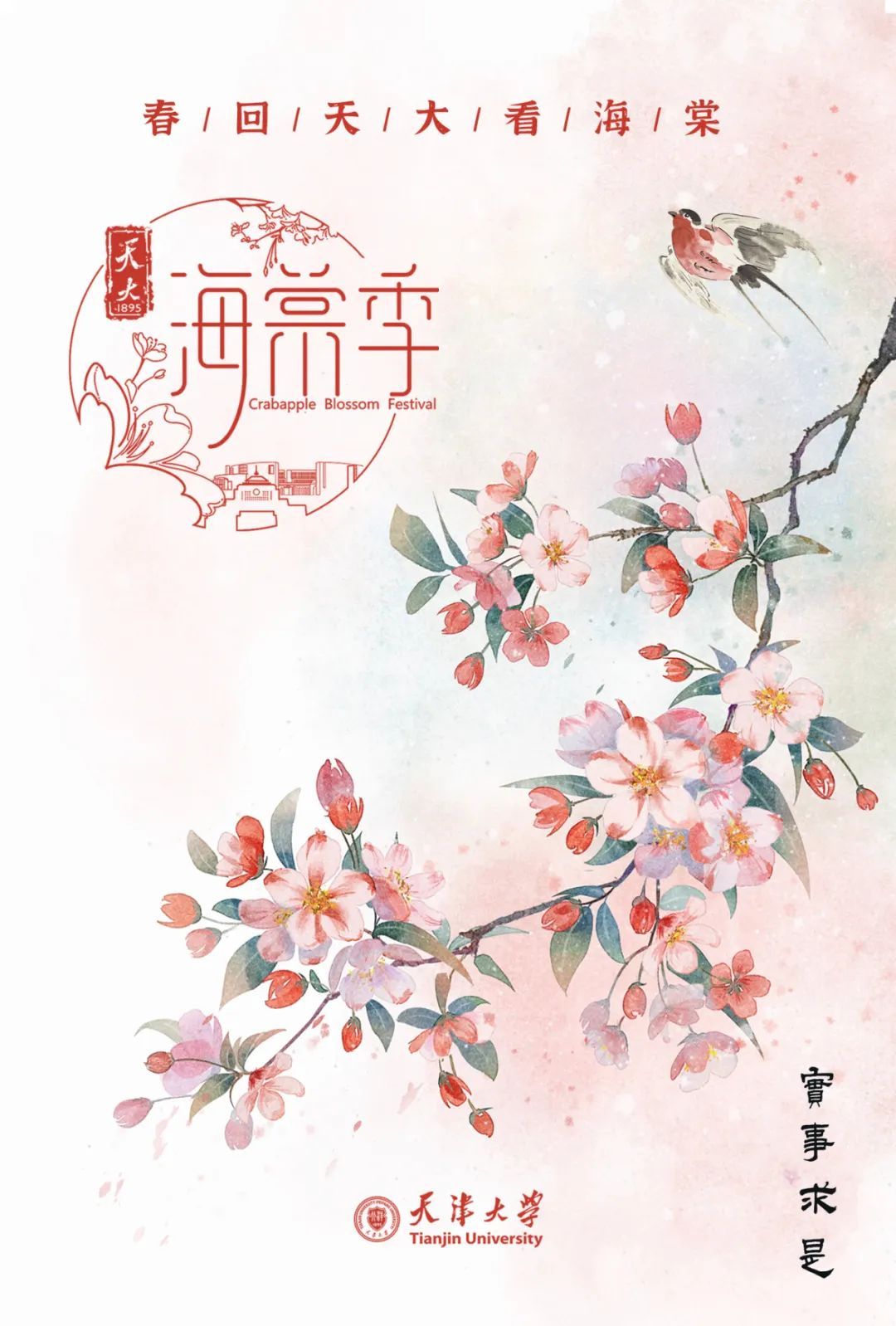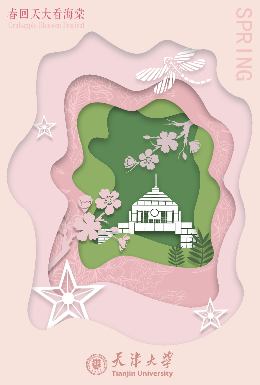 Tianjin University features its Crabapple Blossom Festival in Spring. When spring comes, staff, students, alumni, as well as tourists get together to appreciate crabapple blossom.