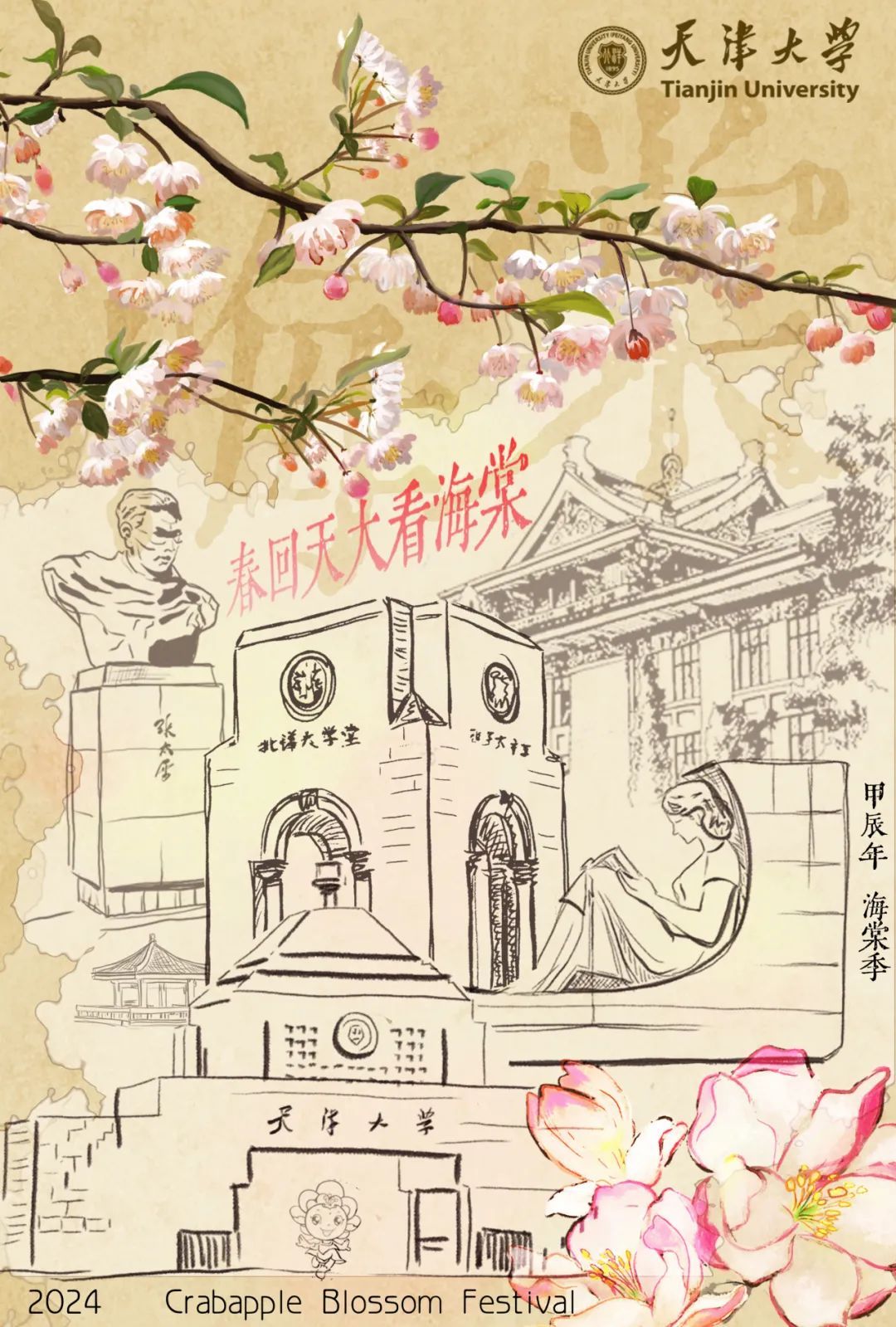 For Crabapple Blossom Festival 2024, Tianjin University designed a series of postcards.