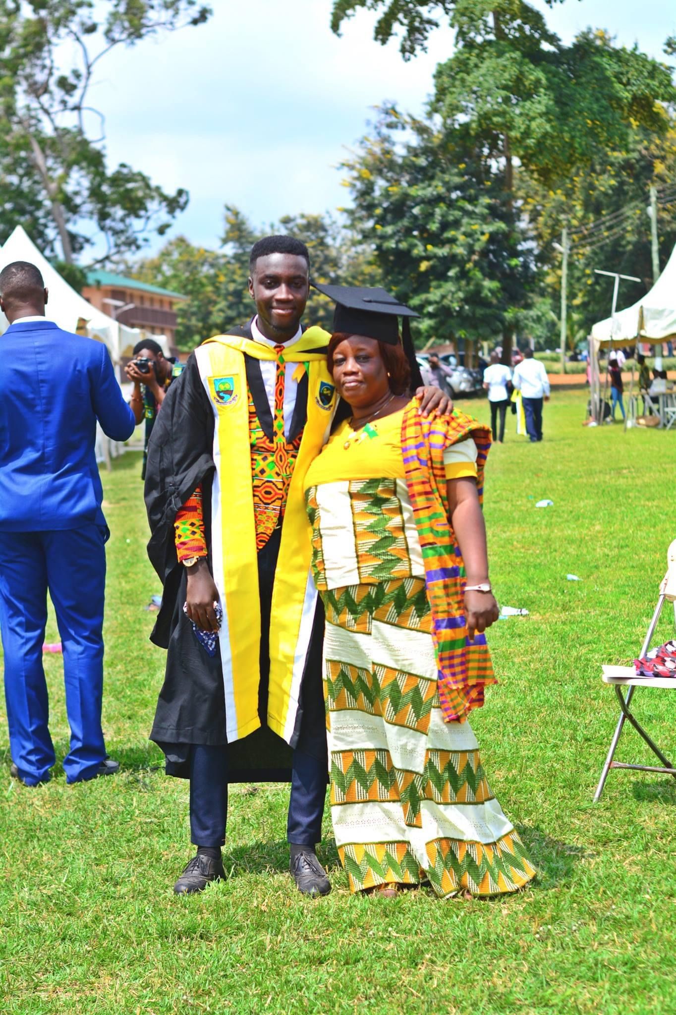 Jeffrey with his mother during the graduation ceremony in UENR
