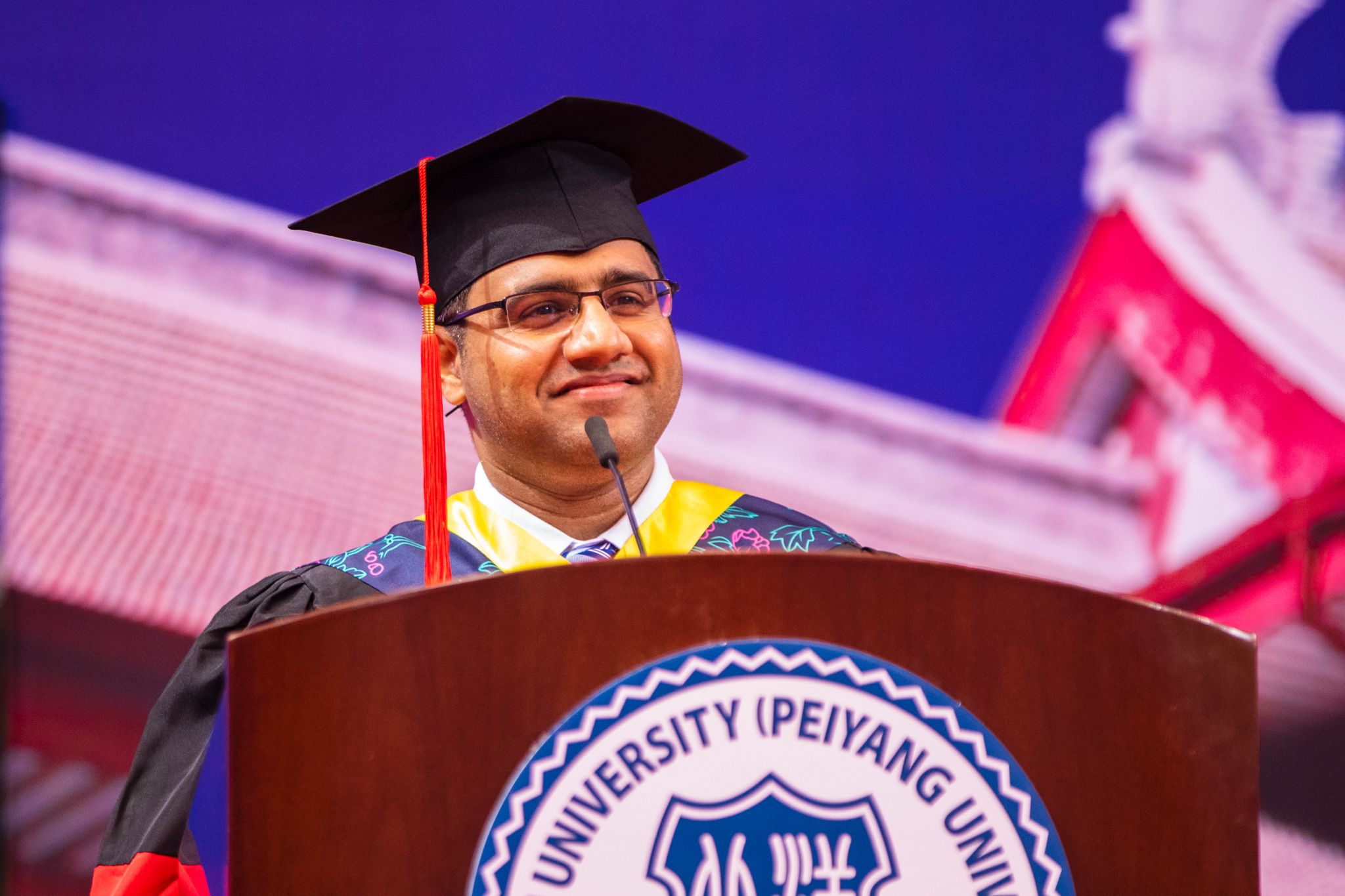 "Hello everyone! I am Kashan Khan from Pakistan, a doctoral student in the School of Civil Engineering. I am very honored today to speak as a representative of the graduates and to share my growth story with you." On the morning of July 5th, at Tianjin University's 2024 Commencement ceremony for graduate students, Pakistani student Kashan Khan confidently stood at the podium and delivered his speech in fluent Mandarin. His impeccable speech earned rounds of warm applause from the attending teachers and students.