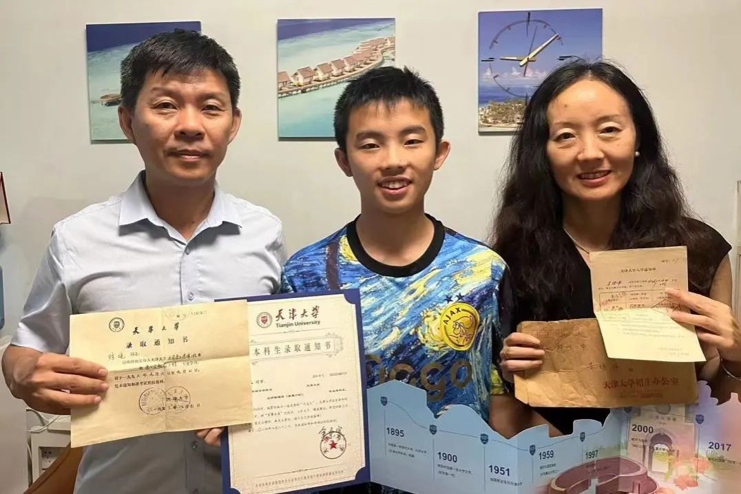 Chen Yiyuan was accepted into Tianjin University's Applied Physics program through the "Strong Foundation Plan." This fall, he will begin his university journey at his parents' alma mater, continuing a family legacy that began 31 years ago. The family proudly displayed their acceptance letters, coining the phrase, "One family, one Tianjin University."