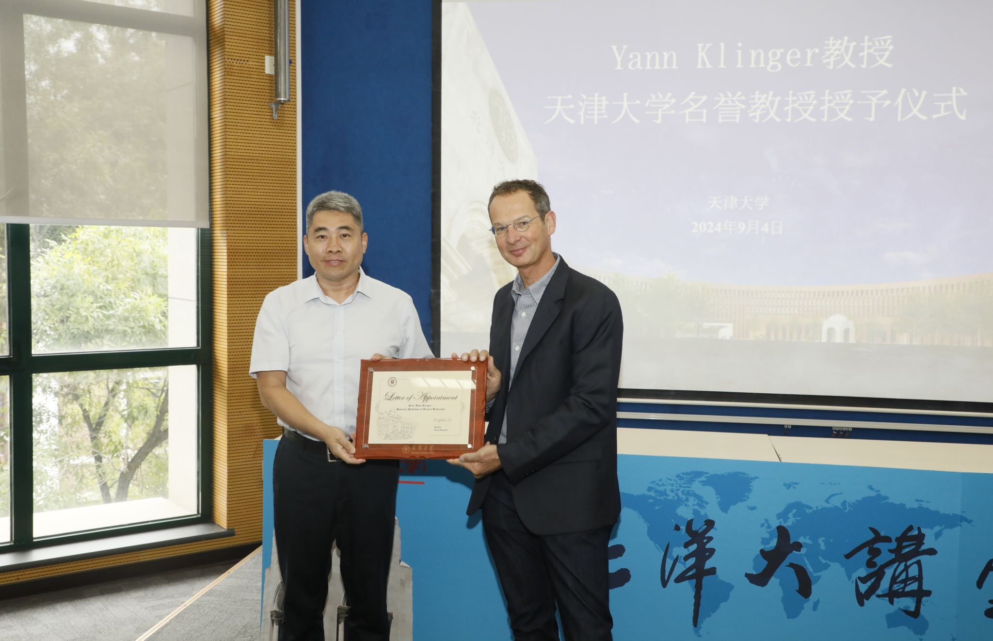 On 4 September, Tianjin University held the Conferring Ceremony of Honorary Professorship for Professor Yann Klinger from the Institut de Physique du Globe de Paris for his outstanding achievements and significant contributions in the field of earth sciences.