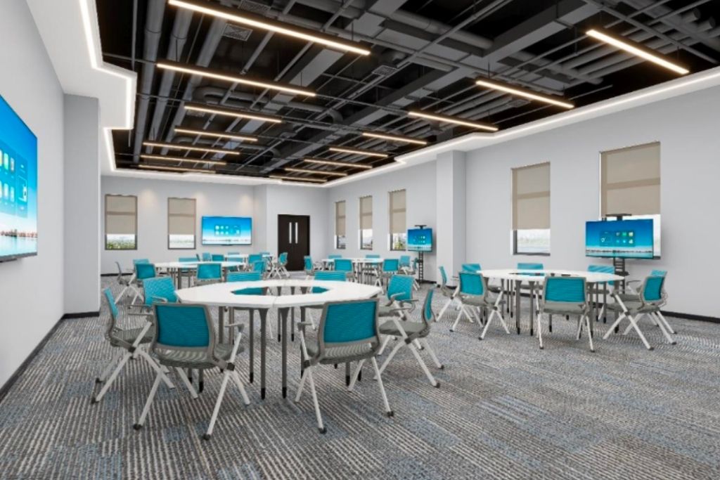 Located in the 33rd Teaching Building of the Peiyangyuan campus, the panoramic teaching space covers 341 square meters and can accommodate 200 people simultaneously. This integrated environment combines online teaching, experiential learning, 3D model instruction, group teaching, virtual training, remote synchronous classrooms, and scientific research.