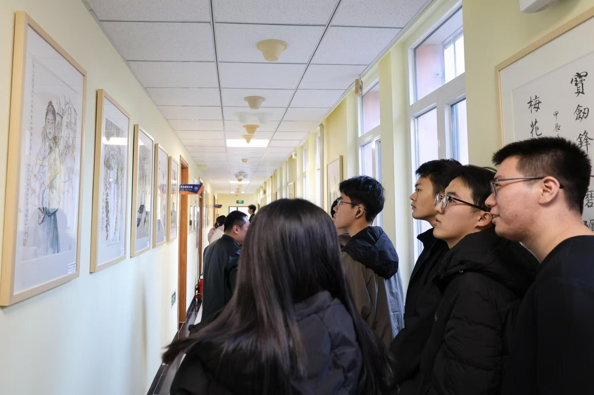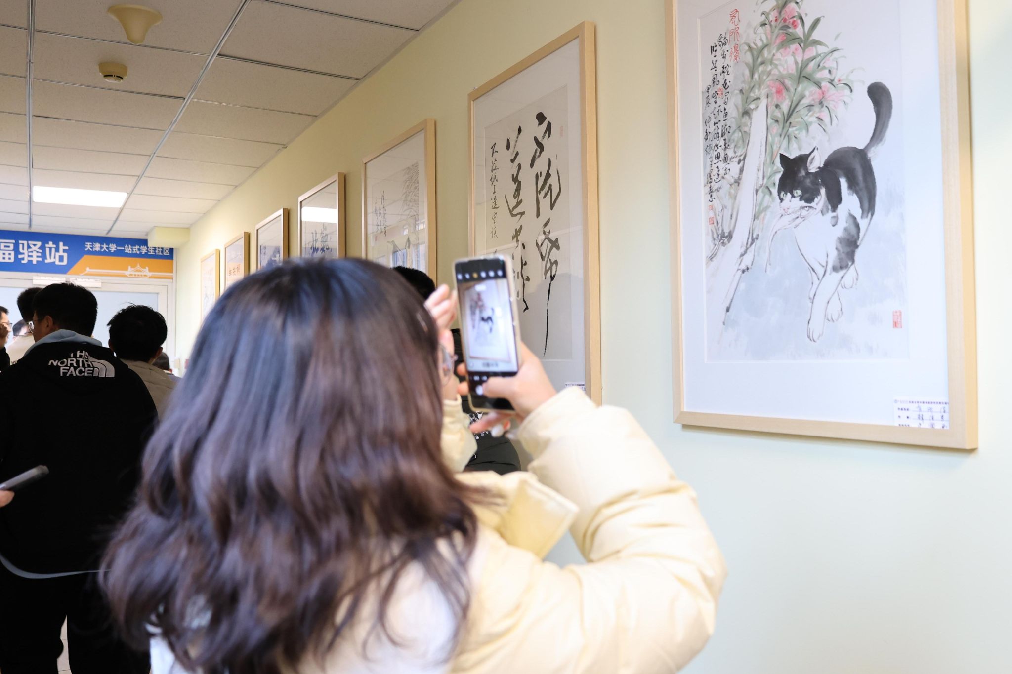 On December 4, the fifth annual exhibition of the Tianjin University Chinese Painting and Calligraphy Society, part of the “Art Exhibition in Residential Colleges” series, opened at the Pengxiang Apartment Student Community on the Weijin Road campus. Nearly 100 artworks were brought directly into students’ living spaces, fostering a vibrant cultural atmosphere on campus.