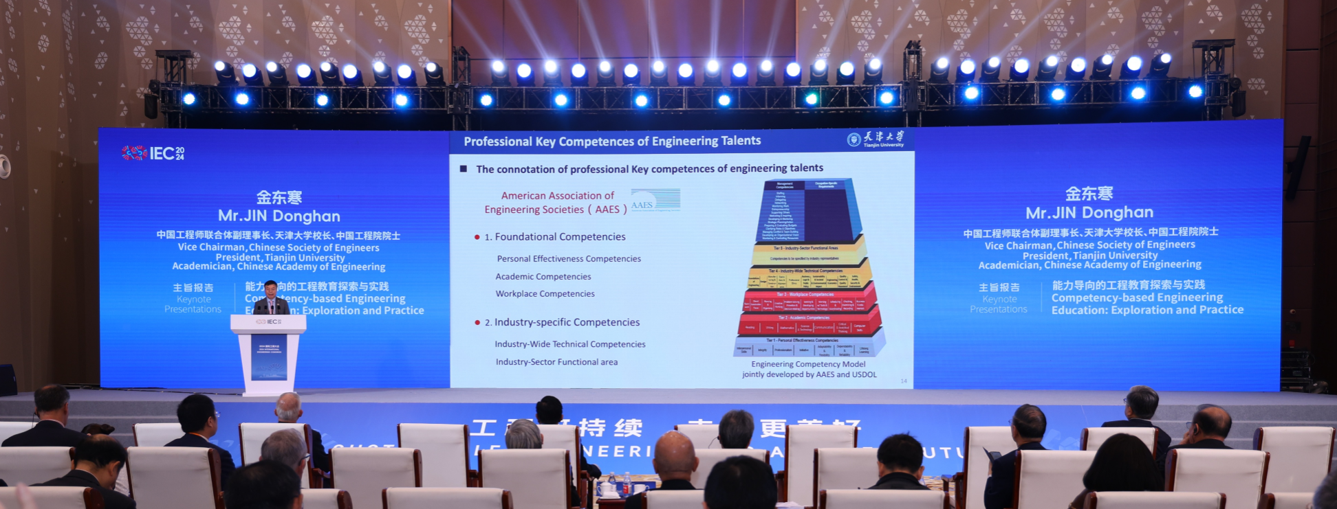 From November 8 to 9, 2024, the 2024 International Engineering Congress (2024IEC), organized by the Federation of Engineering Institutions of Asia and the Pacific (FEIAP), was successfully held in Taizhou, Zhejiang Province. Jin Donghan, an academician of the Chinese Academy of Engineering, president of Tianjin University, and vice chairman of the Chinese Society of Engineers, participated in the event and delivered a keynote speech.