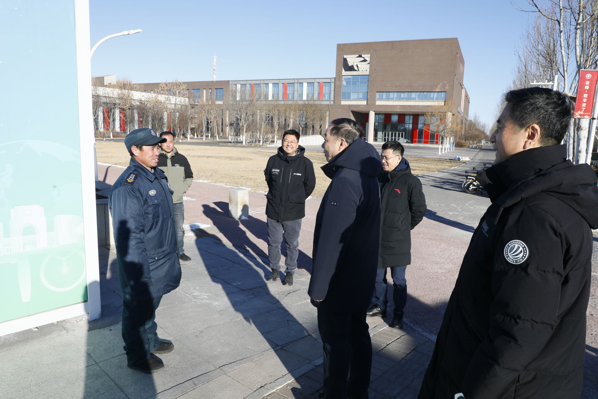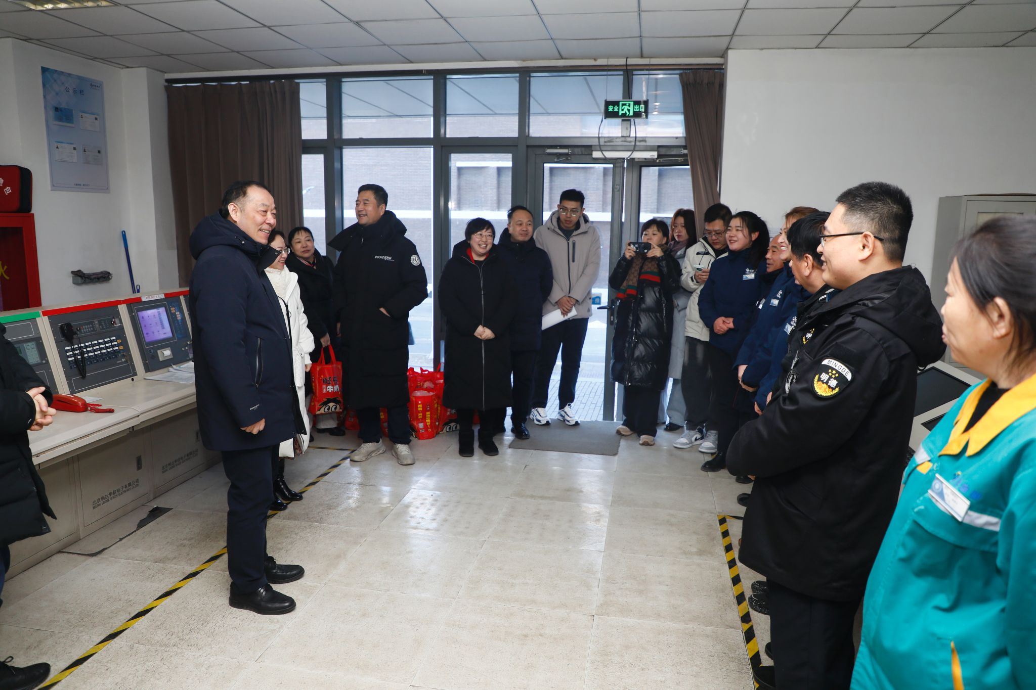 Yang Xianjin and his team visited key areas on both Peiyangyuan and Weijin Road campuses. They toured the main duty rooms and campus entrances, checked the monitoring systems in the control rooms, and visited security staff members. Yang Xianjin expressed his gratitude to the security staff for their dedication and contribution to maintaining campus safety and stability, while offering his New Year wishes.