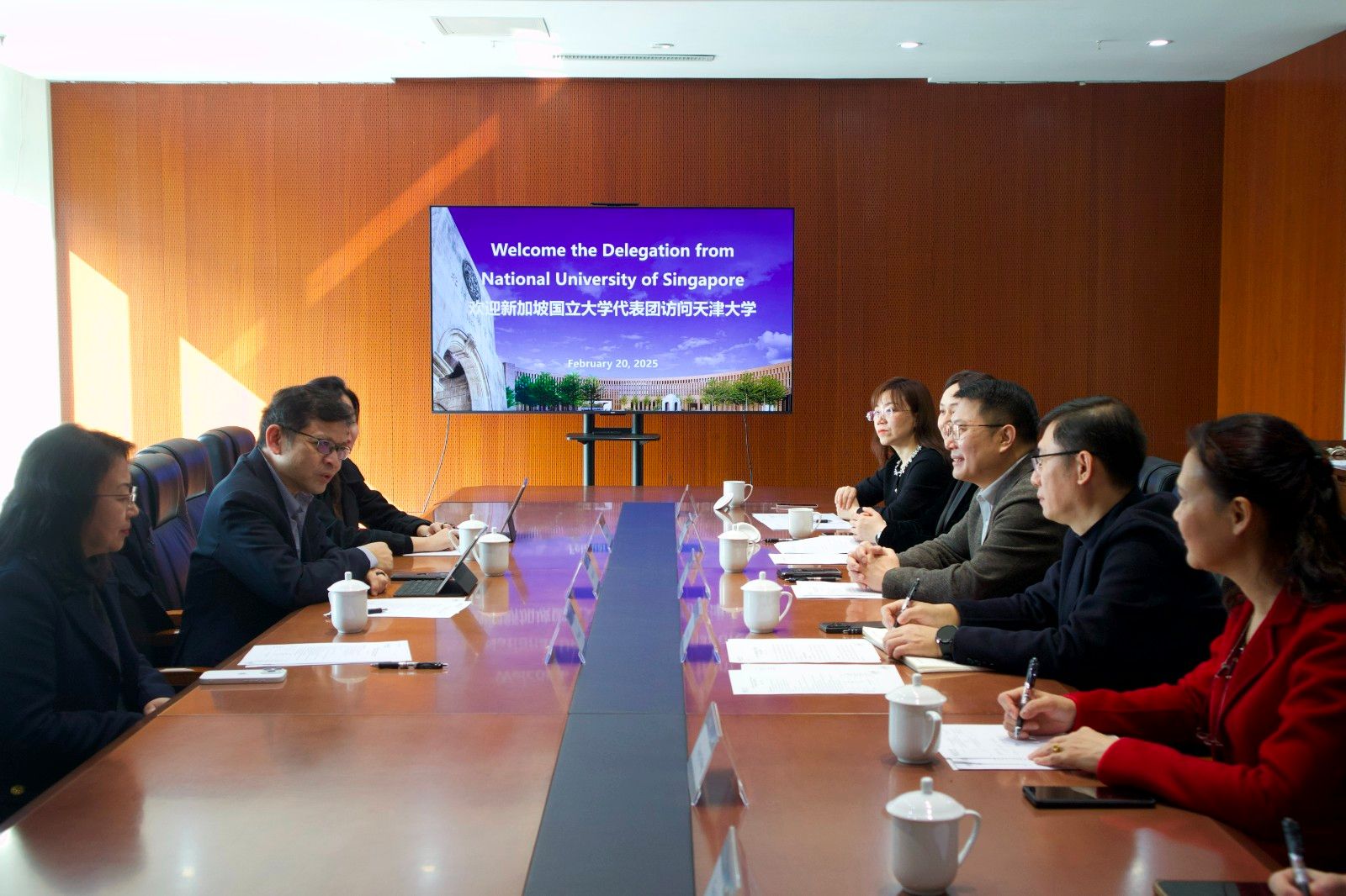 On February 20, a delegation led by Associate Vice President Luo Jibin from the National University of Singapore (NUS) visited Tianjin University. Vice President Ming Dong met with the guests, accompanied by representatives from the Office of International Cooperation and the International Joint Institute of Tianjin University, Fuzhou.