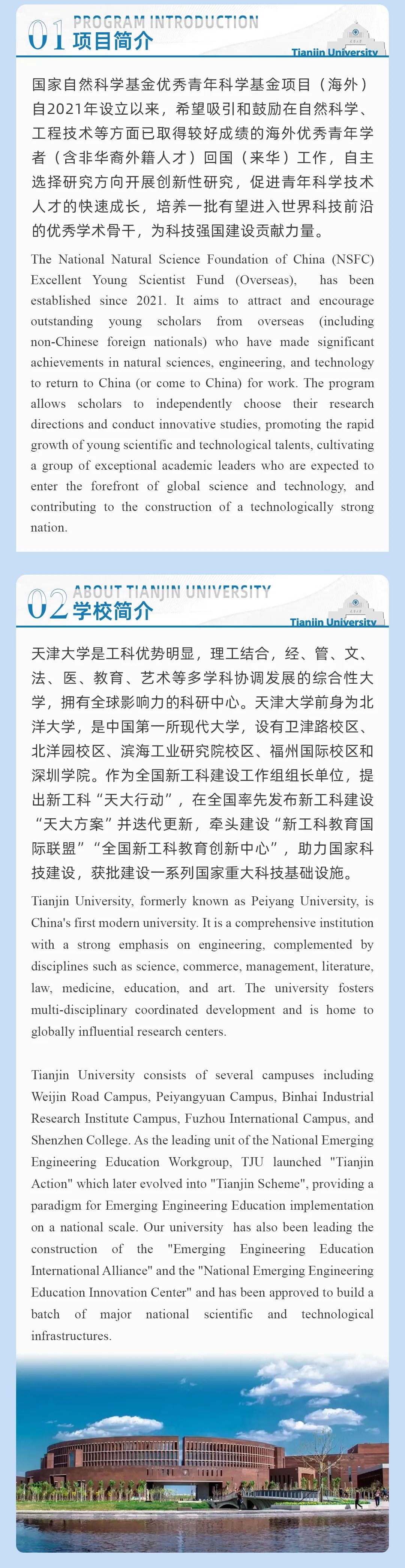 Tianjin University will hold an orientation on 2025 Excellent Young Scientists Fund Program (Overseas) on March 1.
