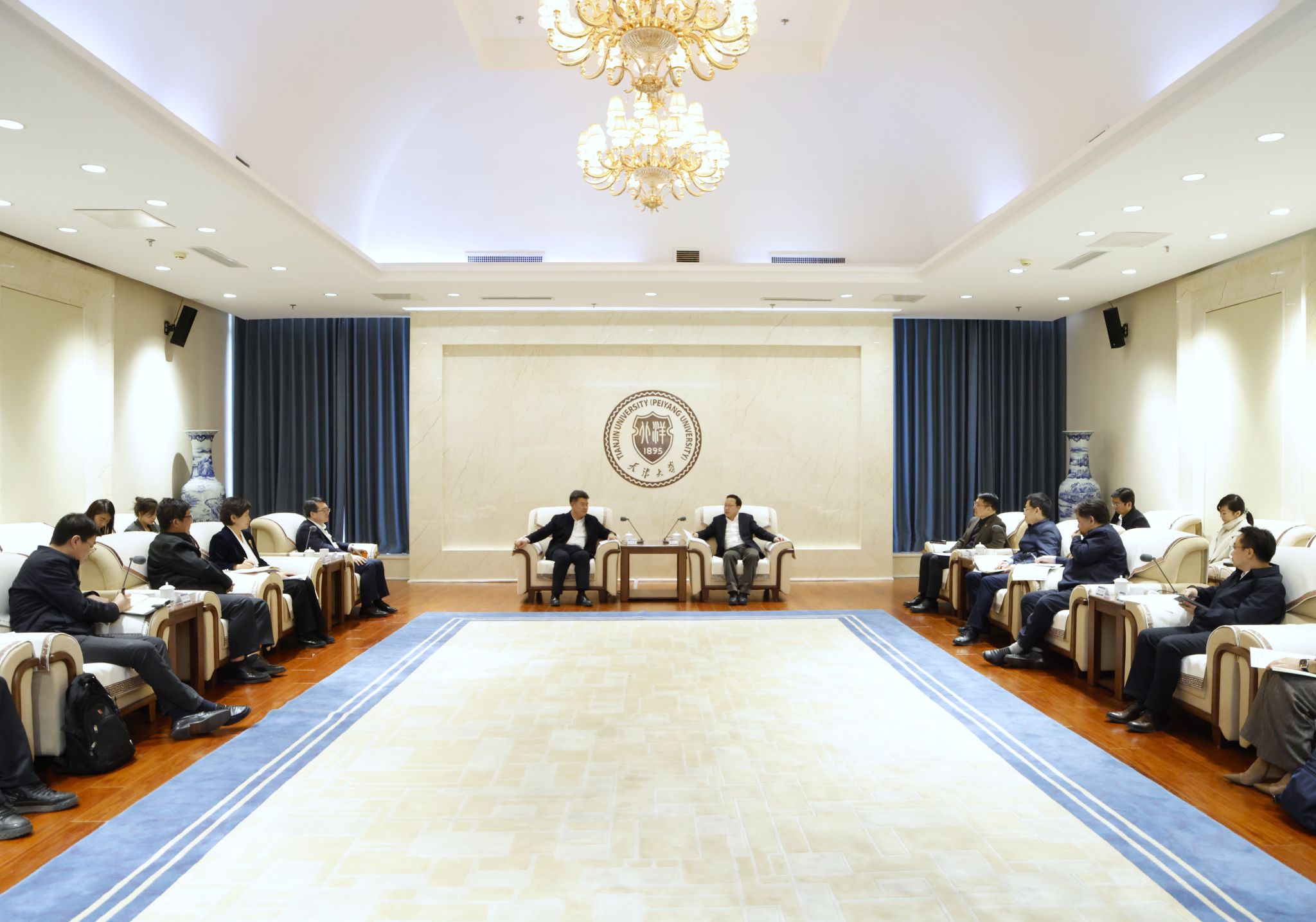 On March 27, a delegation led by Sun Fuchun, Mayor of Benxi, and Cheng Maosheng, President of Shenyang Pharmaceutical University, visited Tianjin University. Chai Liyuan, President of Tianjin University and an academician of the Chinese Academy of Engineering, met with the delegation at Peiyangyuan Campus. Both sides explored deeper cooperation in the silver economy, biotechnology innovation, and industry-academia collaboration.