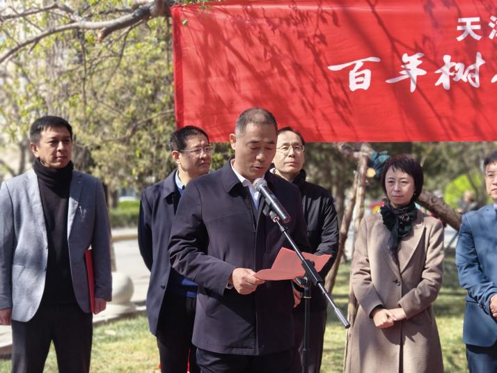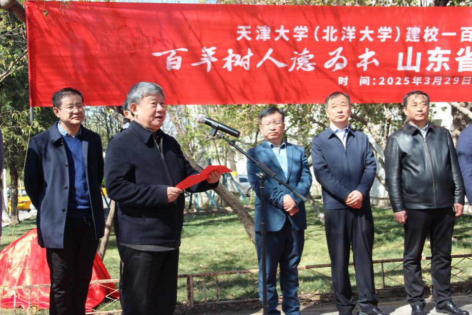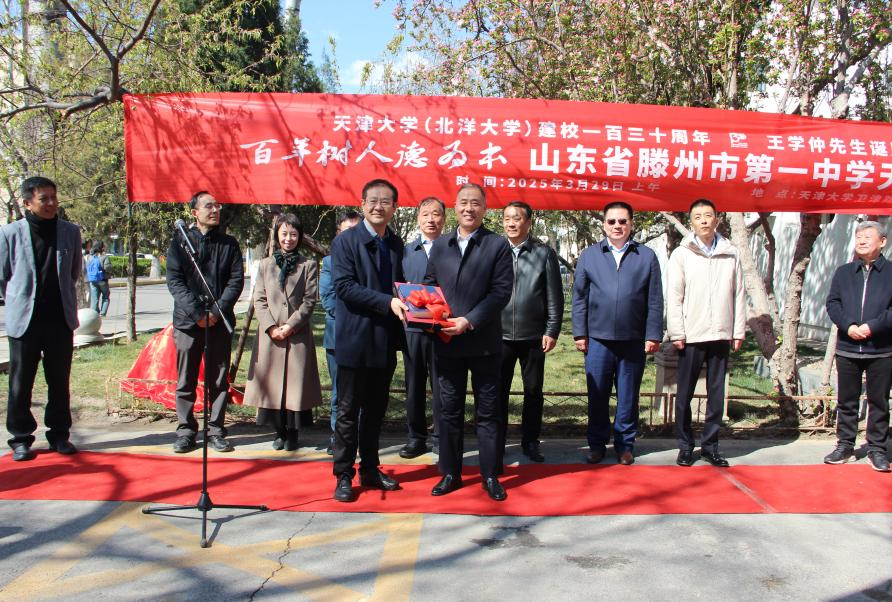 During the ceremony, Tianjin University presented Tengzhou No.1 High School with Wang Xuezhong’s major works, while the high school reciprocated with a calligraphy reproduction created by Wang in 2013. The event concluded with the unveiling of the Tai Mountain stone and a tree-planting activity, symbolizing the enduring cultural ties between the two institutions.
