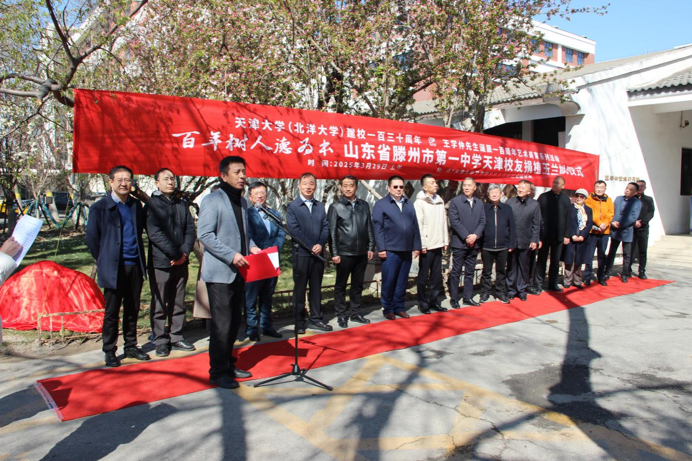 On March 29, a donation ceremony rich in cultural significance was held at the Wang Xuezhong Art Research Institute. The Tianjin Alumni Association of Tengzhou No.1 High School donated six magnolia trees and a Tai Mountain stone, which will be permanently placed in Wang Xuezhong Art Research Institute (Min Garden).