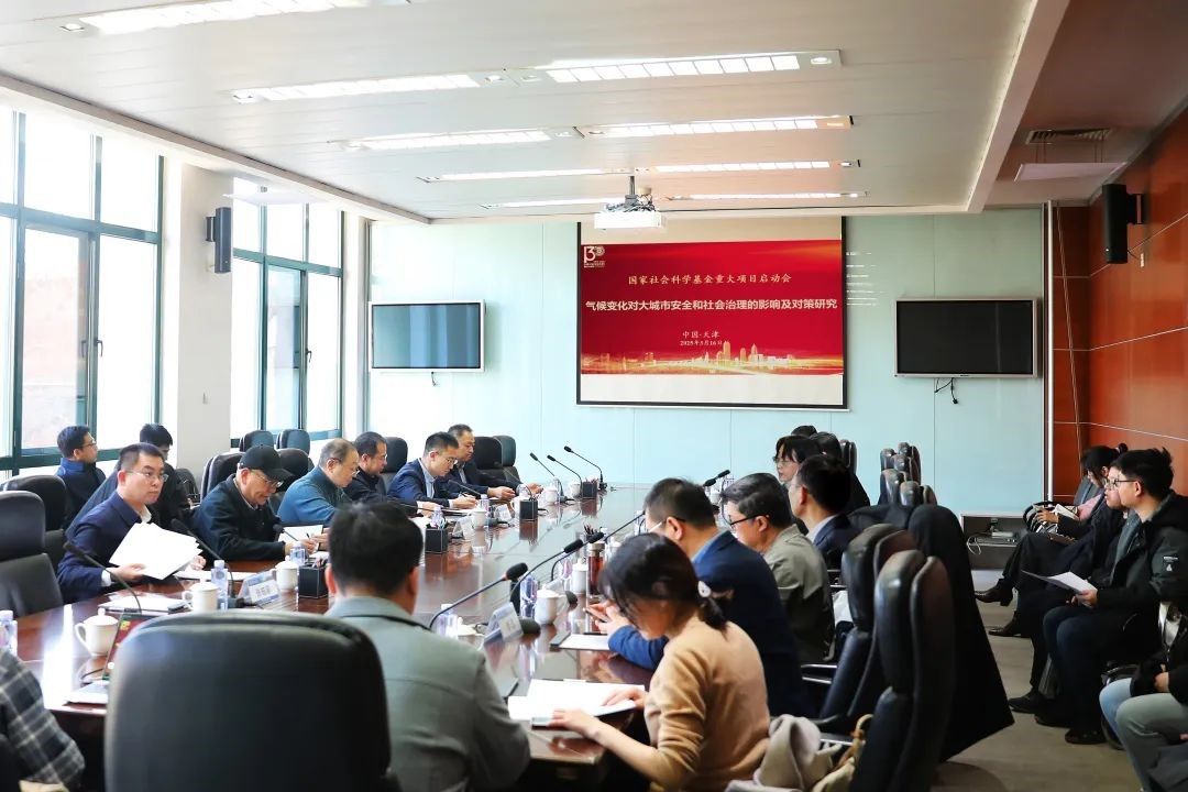 On March 16, the Kick-off Meeting of the major project of the National Social Science Fund of China (NSSFC) titled "Research on the Impact of Climate Change on the Security and Social Governance of Major Cities and Corresponding Countermeasures" was held at the Weijin Road Campus of Tianjin University (TJU).