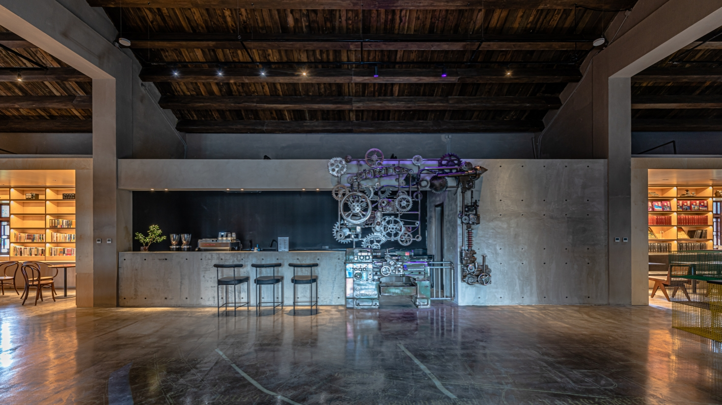 At the heart of the park is the Factory History Museum, which chronicles Tianjin’s industrial evolution through photographs, historical documents, and original machinery. The reception lounge infuses the atmosphere with artisanal coffee culture and mechanical design elements, creating a space where heritage meets innovation.