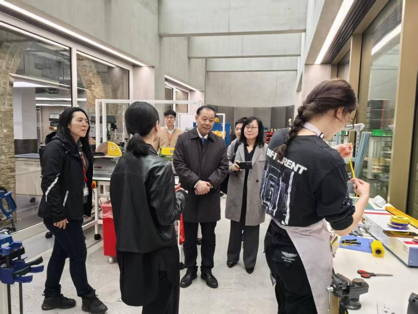 On the same day, the delegation visited Brunel University London and held discussions with Vice-Chancellor Trevor Hoey, Zhao Hua, and other representatives. Professor Yang proposed further expanding scientific research cooperation in cutting-edge fields such as artificial intelligence and big data. The delegation visited the design school's practice space and the Advanced Casting Technology Centre (BCAST), and met with exchange students.