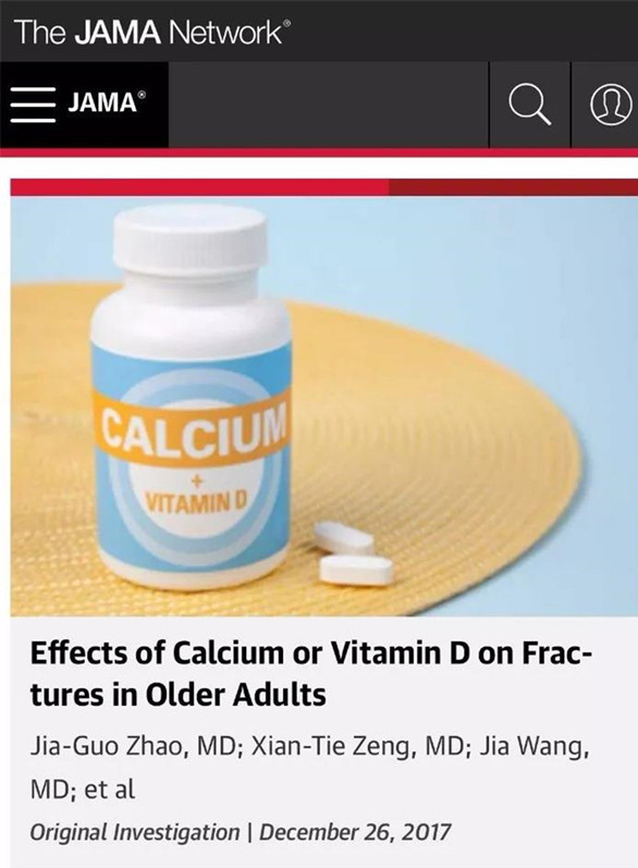 Supplements of calcium/vitamin D have always been considered a basic intervention for the prevention and treatment of osteoporosis. Osteoporosis Associations at home and abroad suggest older adults should supplement calcium/vitamin D to increase their bone density and reduce the occurrence of osteoporotic fracture. However, after analyzing over 50,000 big data, Zhao Jiaguo and Zeng Xiantie’s team pointed out that calcium supplements, whether vitamin D, or calcium / vitamin D do not reduce the incidence of fractures in community-dwelling older adults over 50 years old. On the contrary, large doses of vitamin D add to the risk of fracture. In conclusion, it recommended that extra calcium/vitamin D should not be routinely supplemented to those people.