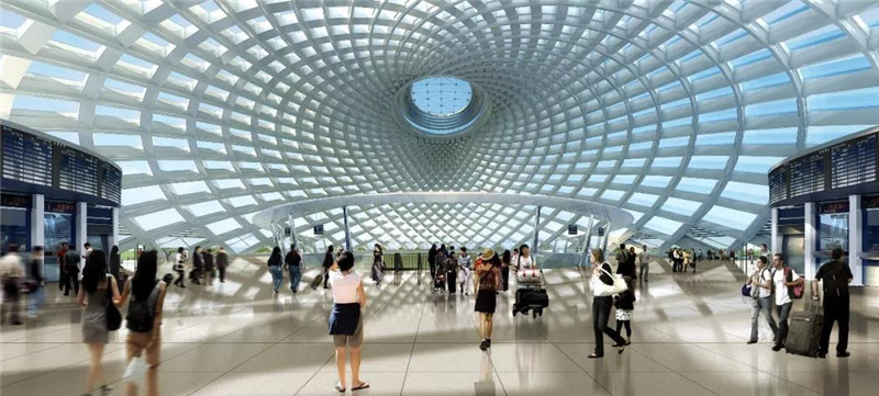 The Yujiapu Station is fine and delicate in design. Deriving inspiration from nautilus shells and the Sunflowers, the architects made the building into a shell structure extended from a grand spiral grid structure, creating a distinctive and bright visual effect. There are two innovations that make the Station so special: one is the aesthetically pleasing form of the grid’s intricate design, and the other is the rare large-span dome construction based on the new innovation of the designers from Tianjin University. The newly built Station is now regarded as a prominent landmark of the Binhai District for millions of passengers from all over the world.