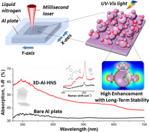 A team led by Professor Yang Jing of Tianjin University, exploited a convenient and efficient millisecond-laser-direct-writing in liquid nitrogen (MLDW-LN) technology, which can fabricate 3D aluminum hybrid nanostructures (3D-Al-HNSs) with a high density of plasmonic hot spots. The achievement was published in the Advanced Functional Material journal and was reported as a back-cover research paper. National Natural Science Foundation of China funded the research.