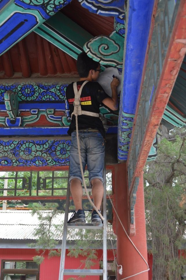 Prof. Wang Qiheng entered Tianjin University as a postgraduate student in 1982. Since then, he has devoted himself wholeheartedly to ancient architecture surveying and measuring for 30 years. “In the past years, we have measured the Imperial Palace, the Summer Palace, the Imperial Summer Resort, etc. Students must actually climb onto the building by ladders or ropes to get a close touch with the ancient buildings. It is a process where they speak with the ancient Master Architects about the root of Chinese architecture. That’s the real architectural education with Chinese characteristics.” Said Professor Wang. At the age of 70, he still works on the spot of ancient architecture mapping, setting up ladders for climbing, fixing safety ropes for students, and preparing the air cushion bed for protection. He asks students to follow four steps during the mapping practice, namely, climbing the architecture, drawing sketches according to the data, converting the sketches into computer mappings, and eventually developing an ardent passion for ancient architecture mapping.