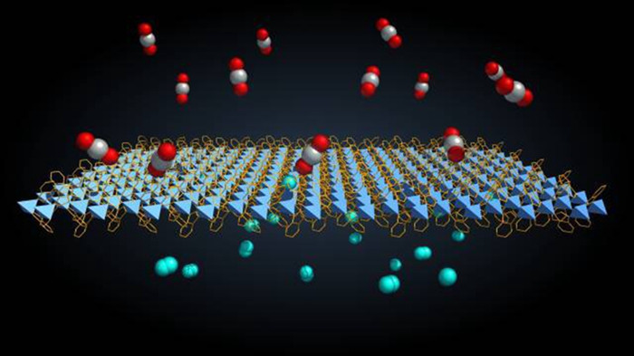 The researchers first stuck polyvinylamineacid chains onto a porous polymer substrate. These polymer chains are aligned perpendicular to the substrate. Between the chains, the researchers introduced nanoparticles of montmorillonite in which they had previously replaced the usual calcium ions with sodium ions. A special coupling reagent was used to bind the mineral layers with the polymer chains into a mixed matrix. This method maintains the layers, and thus their channels, parallel to the polymer chains. The result is an ultrathin membrane with straight channels that can be used for transport. The OH groups in the channel walls interact with the acidic CO2, facilitating its transport. The permeability of the membrane for CO2 is thus significantly higher than for nitrogen, methane, or hydrogen, which allows the CO2 to be separated from mixtures.